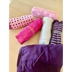 Definitely NOT the purple colors shown online. If I had been buying this in person, I would have never bought these colors. One blueish, wanna be purple, but its blue!, one black-the only redeeming pair, generic white that no one wants, fug, builders beige, a faded reddish, and a very faded navy blue. All color I dislike. These are impossible to find in store. If you do, its like finding a needle in a haystack . They are my favorite style for around the house. Shorts enough to be worn alone and dont get hot like a longer short, fit my athletic legs. Super comfy. They really need to work on the colors though. An all black package or all purple, would be perfect. But make tons of them cause they would sell out. For the fit, Ill deal with the colors and hope no one sees me.