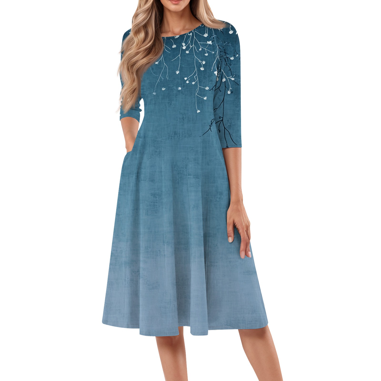 Hero image 0 of FrzhBrz 3/4 Sleeve Dresses for Women 2025 Casual Cute Midi Dress Round Neck Cute Printed Loose Fit Midi Dress, 0 of 6