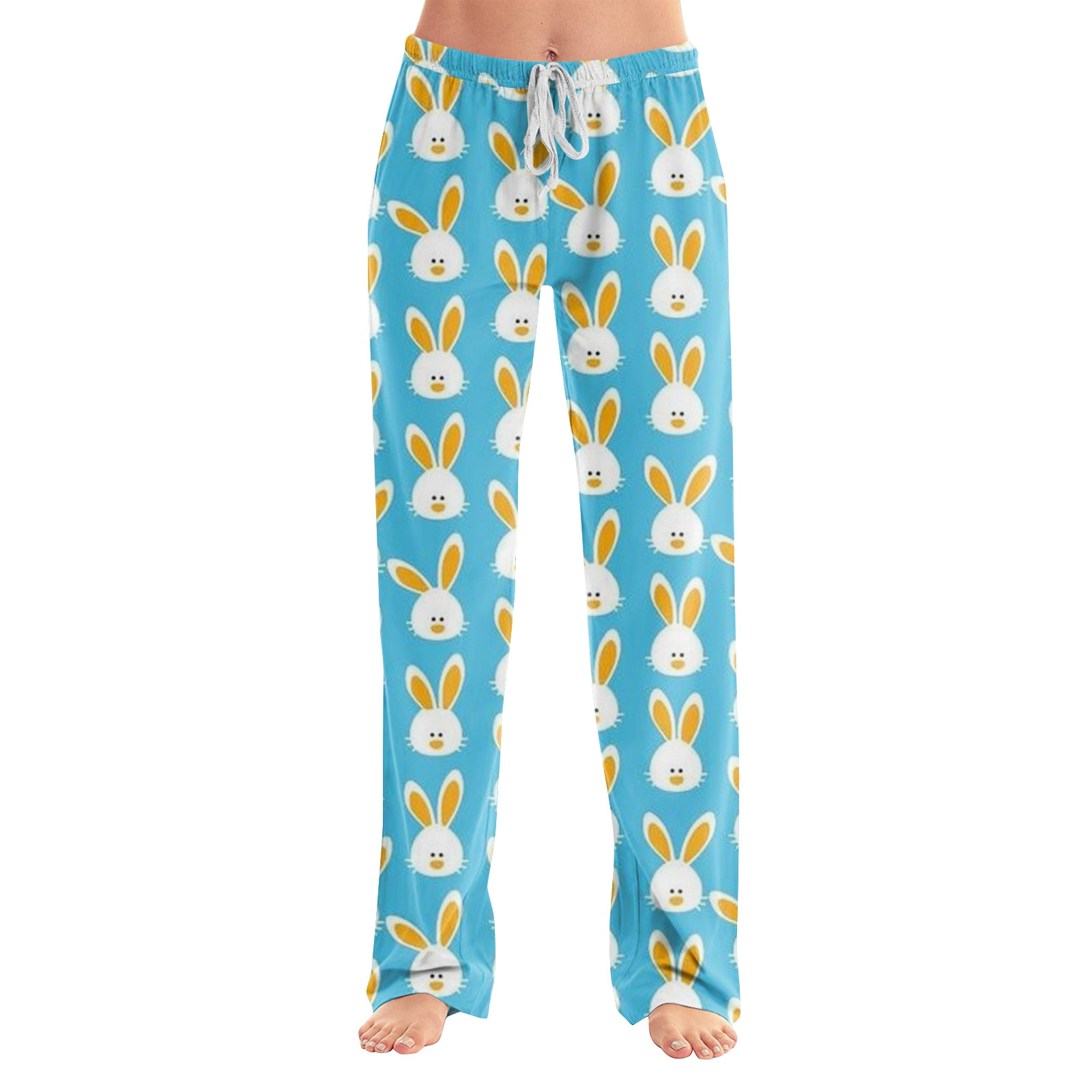 FrzhBrz Easter Comfy Womens Pajama Pants Funny Bunny Pj Pants Lightweight Drawstring Pajama Bottoms Cute Easter Graphic Pajama Lounge Pants