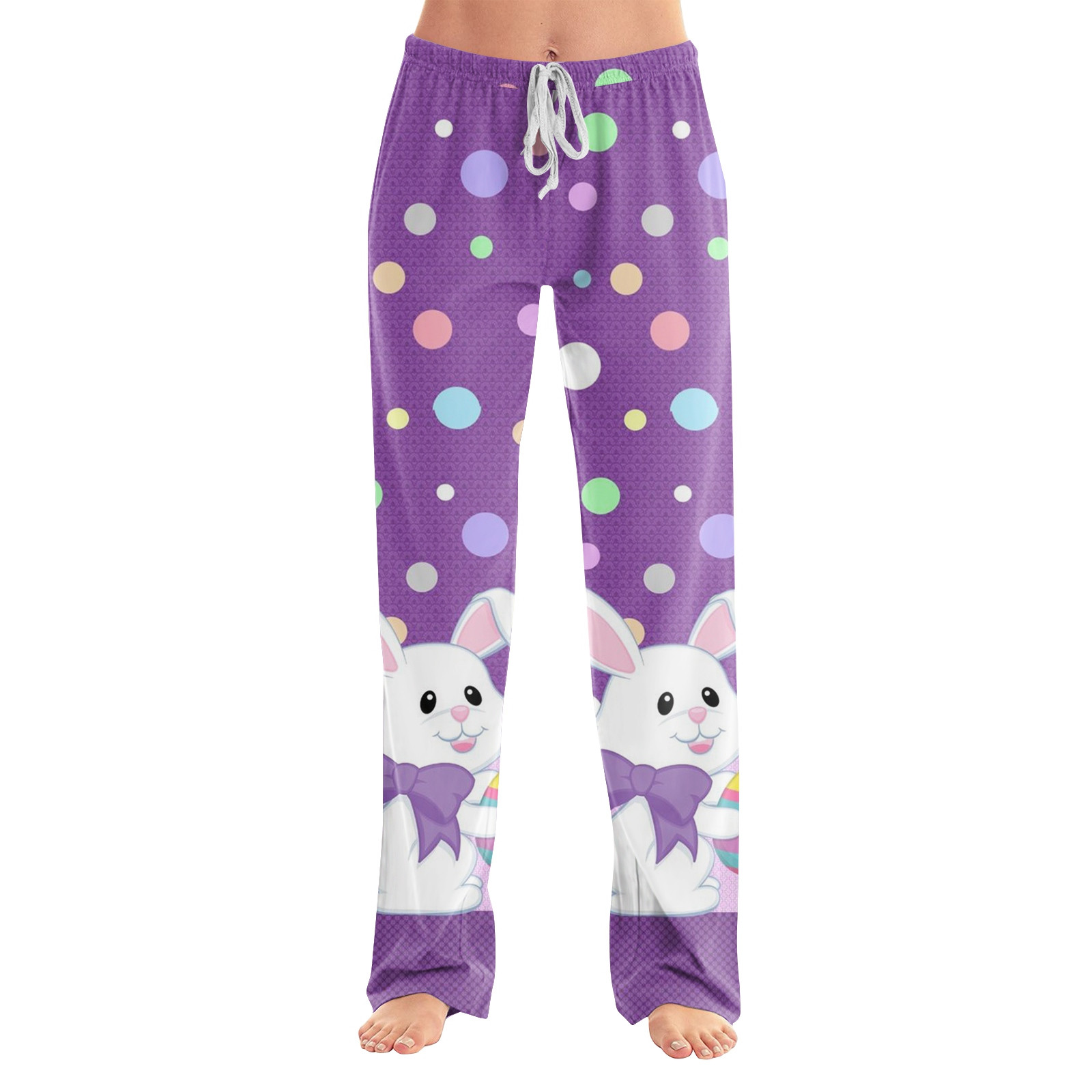 FrzhBrz Easter Pajama Pants Women Bunny Rabbit Graphic Pj Bottoms Easter Bunny Soft Wide Leg Drawstring Lounge Pants Sleepwear Bottoms