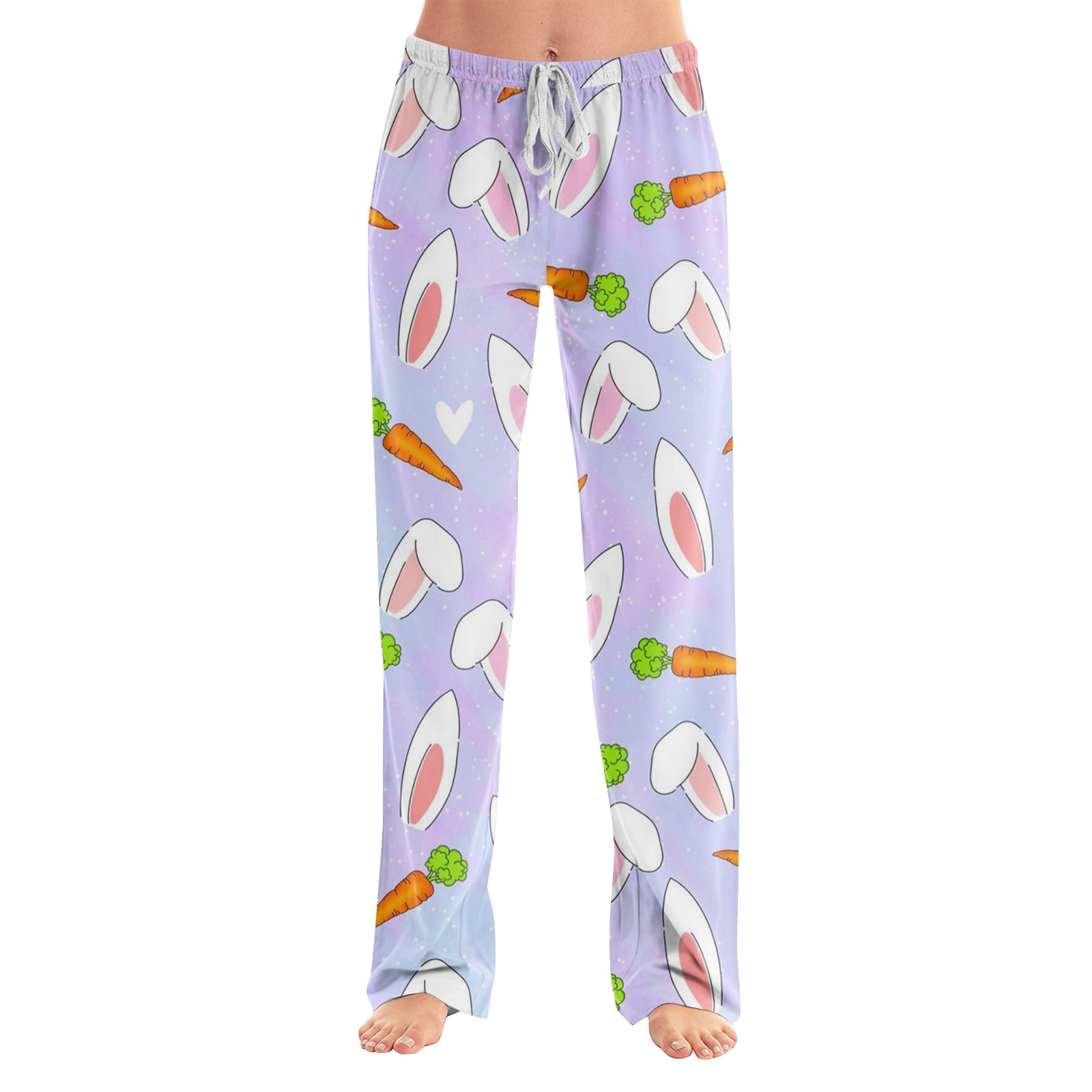 FrzhBrz Easter Pajama Pants Women Cute Bunny Pj Bottoms Cute Easter Graphic Comfy Wide Leg Drawstring Pajama Lounge Pants