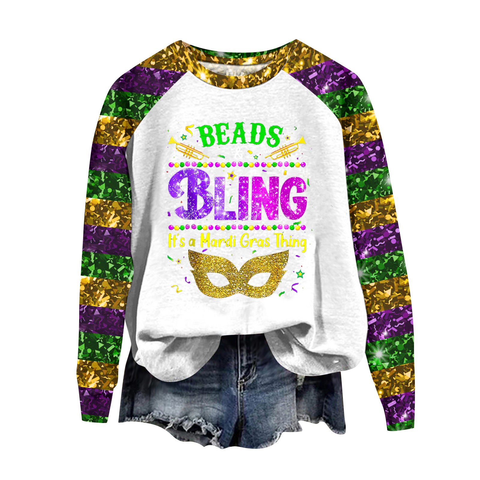 FrzhBrz Mardi Gras Plus Size Shirts for Women Long Sleeve Tshirts Tops for Women Graphic Mask Printed Carnival Party Parade Tunic Tops
