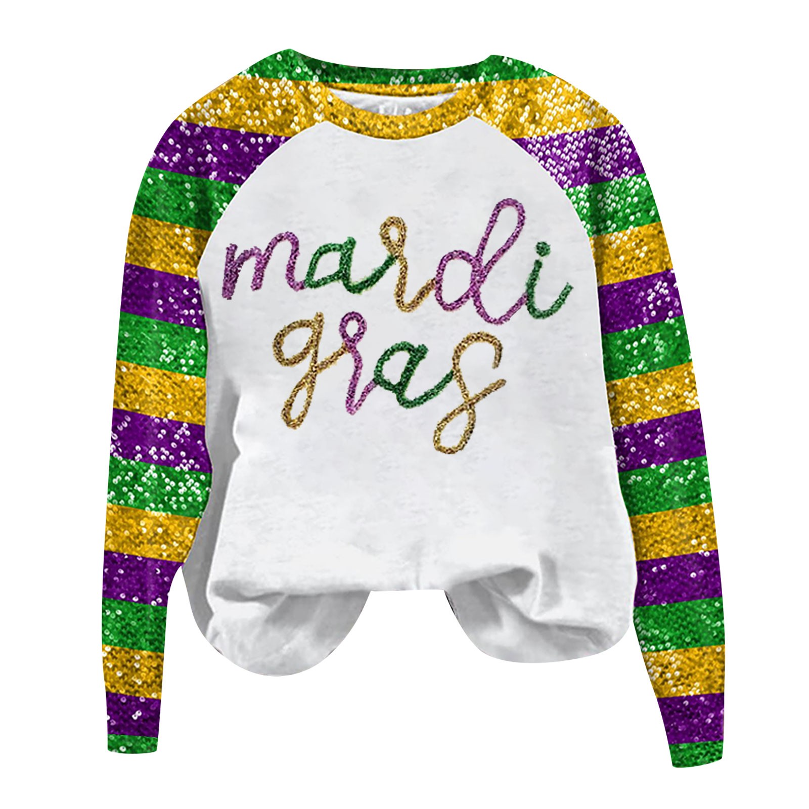 FrzhBrz Mardi Gras Plus Size Tops for Women Long Sleeve Tshirts Shirts for Women Graphic Mask Printed Carnival Parade Plus Size Tunic Tops