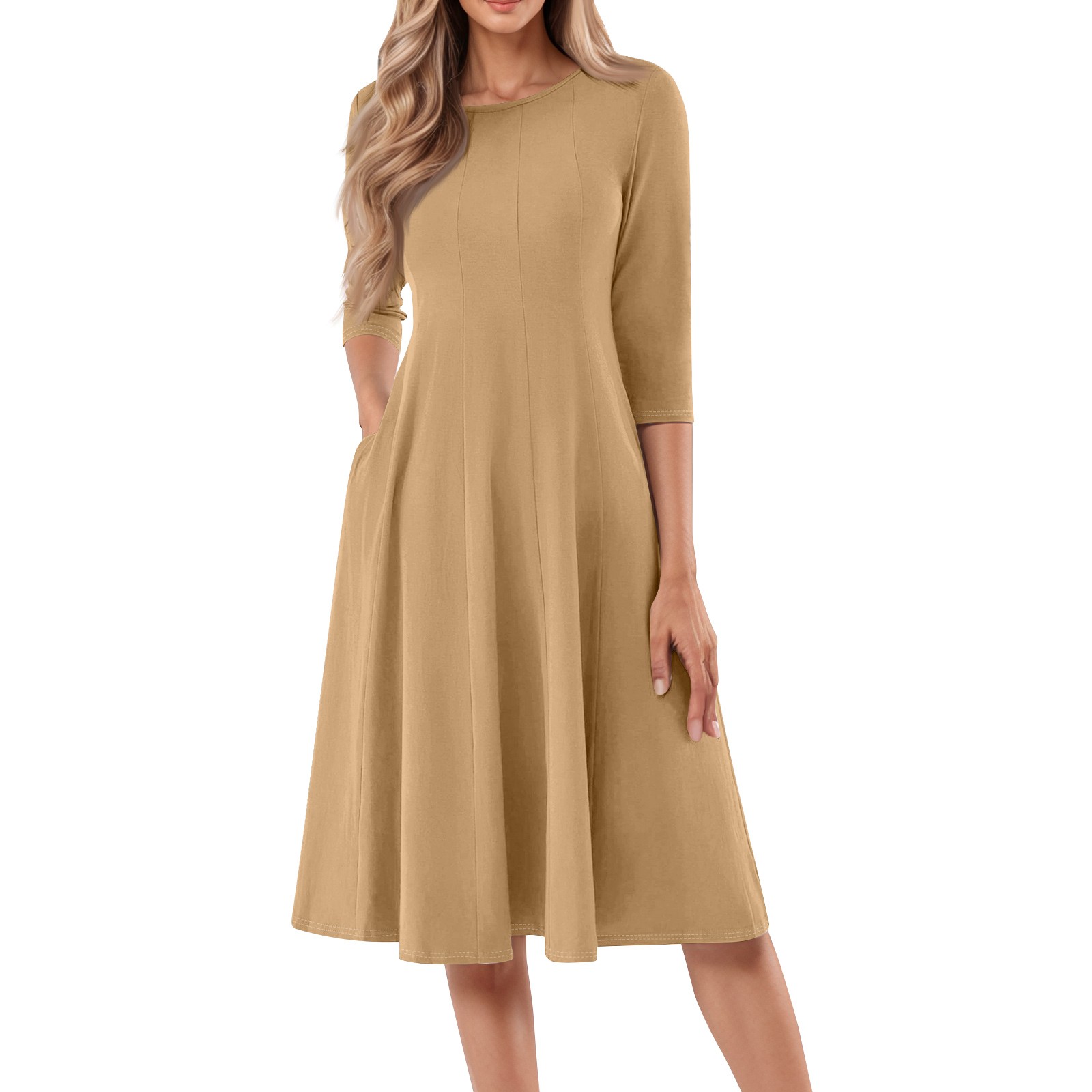 FrzhBrz Midi 3/4 Sleeve Dresses for Women Casual A-Line Round Neck Wrap 2024 Fall Trendy Casual Loose Dress