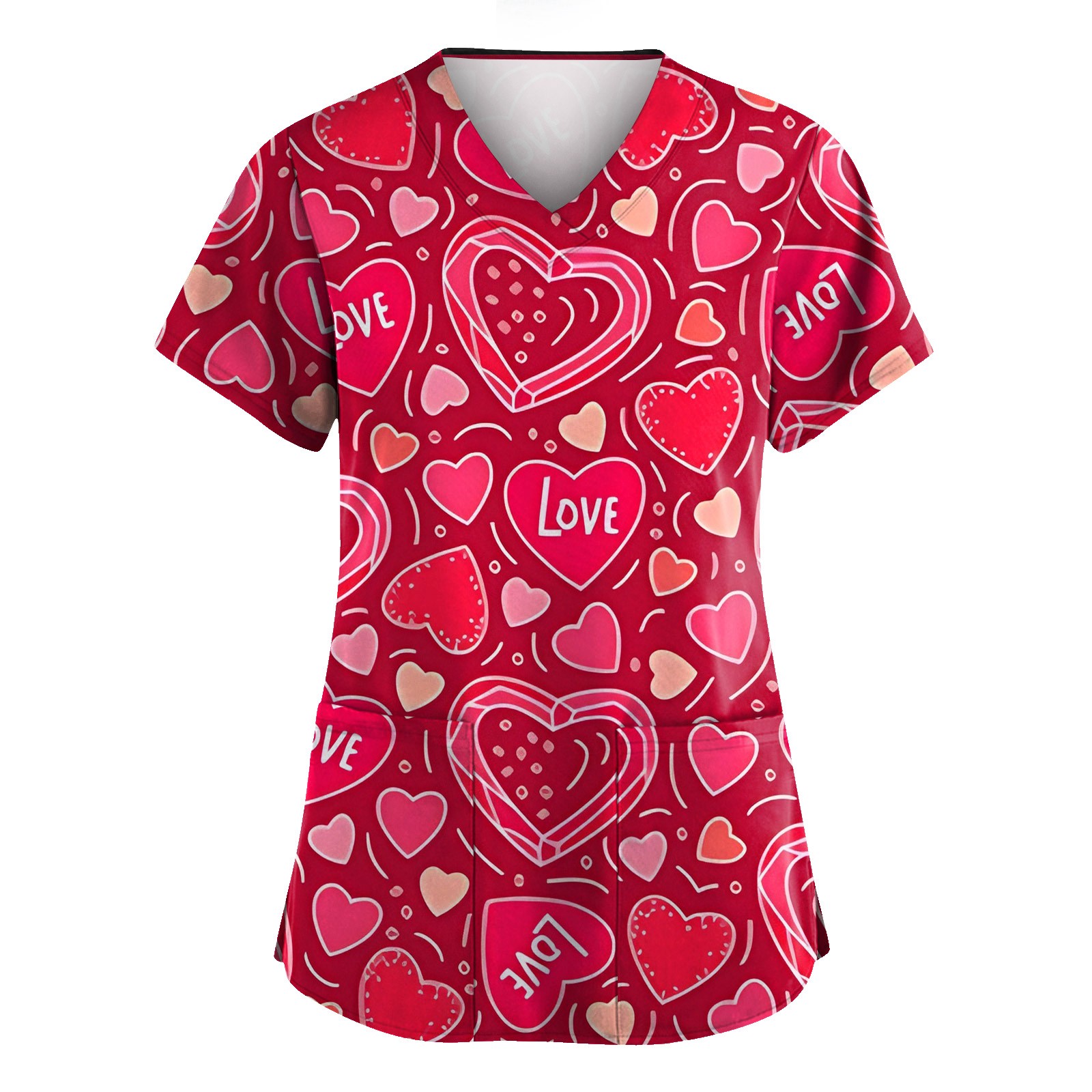 Hero image 0 of FrzhBrz Valentine's Day Scrub Tops for Women Cute Heart Nurse Scrubs Shirts V Neck Plus Size Workwear Valentines Nursing Uniform, 0 of 3