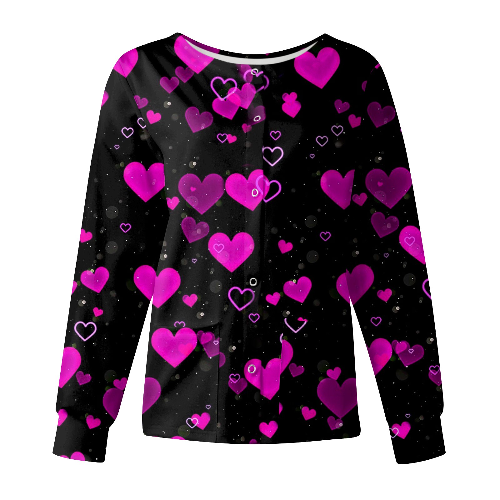 FrzhBrz Valentines Day Women's Scrub Long Sleeve Jacket Love Heart Print Nursing Scrubs Jacket Tops Snap Front Valentines Holiday Nursing Tops