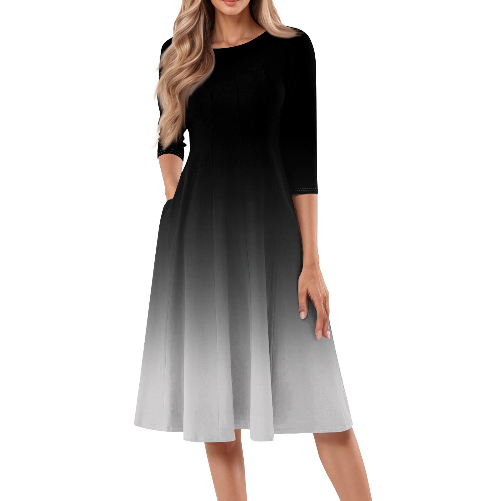 Hero image 0 of FrzhBrz Women's Casual 3/4 Sleeve Flare A-line Midi Gradient Long Maxi Dress 2024 Fashion Comfortable Crew Neck Casual Dress, 0 of 5