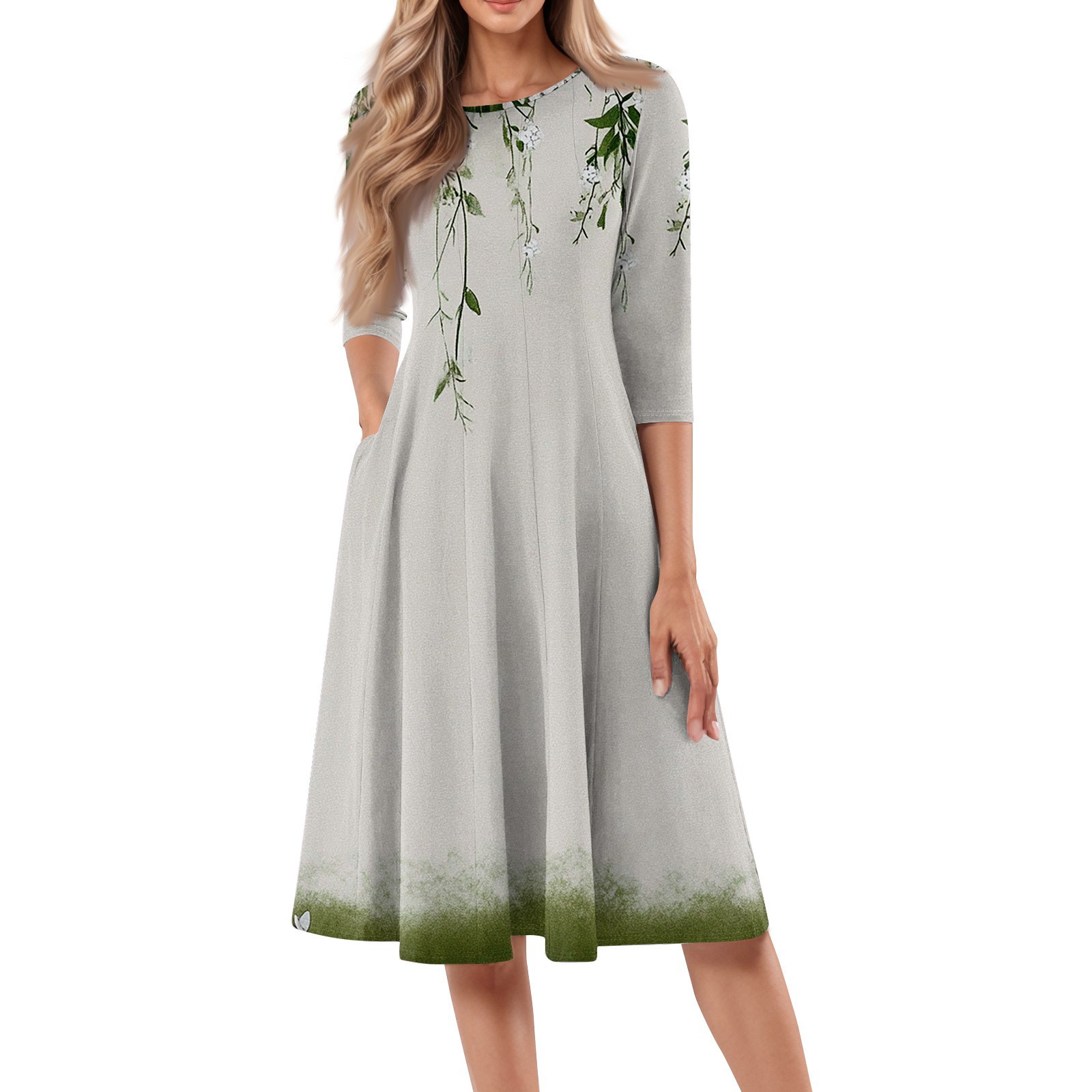 Hero image 0 of FrzhBrz Women's Loose Fit Crew Neck 3/4 Sleeve Elegant Print Flare A-Line Midi Dress, 0 of 4