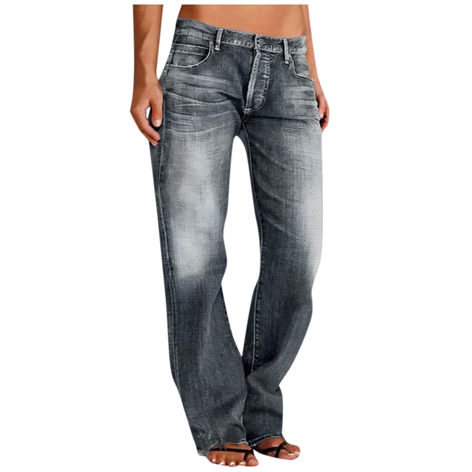 FrzhBrz Womens Jeans Stretchy Fashion Wide-leg Straight Pants Loose Fit Boyfriend Denim Retro Y2K Jean