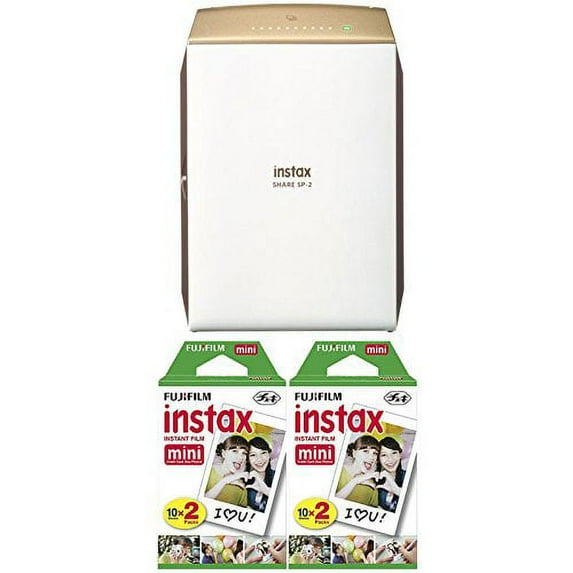 Fujifilm INSTAX SHARE SP-2 Smart Phone Printer (Gold) - The Fujifilm instax SHARE Smartphone Printer SP-2 allows you to print photos shot with a smartphone or tablet using Fujifilm's free downloadable instax SHARE app for Android and iOS. Each print measures 2.4 x 1.8" with up to 320 dpi resolution and prints in approximately 10 seconds. A reprint button lets you make additional copies. Choose from several templates and filters, and upload your images to social networking sites. The SP-2's battery recharges in approximately 90 minutes with 40 Instant Films