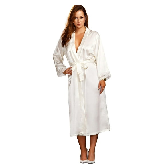 Hero image 0 of Full Figure Plus Size Long Satin Robe, 0 of 2