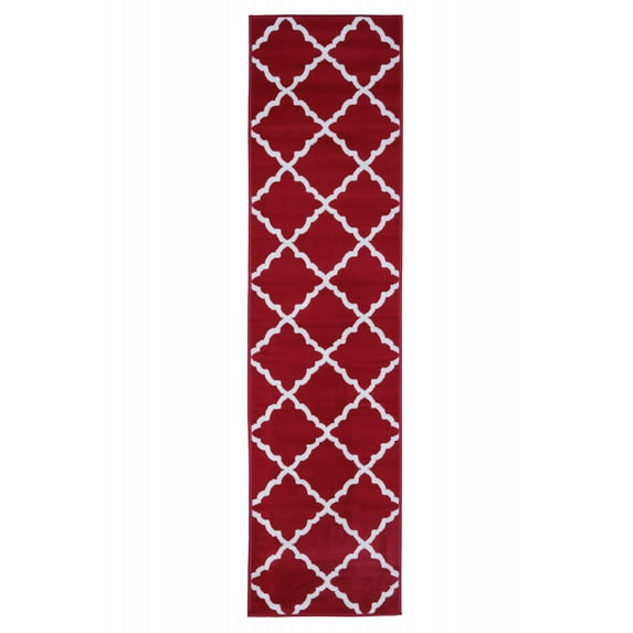 Furnish My Place Indoor Contemporary Trellis Rug with Jute Backing Runner - 2 ft. x 8 ft., Red, Modern Geometric, Area Rug for Living Room, Bedroom, Hallway