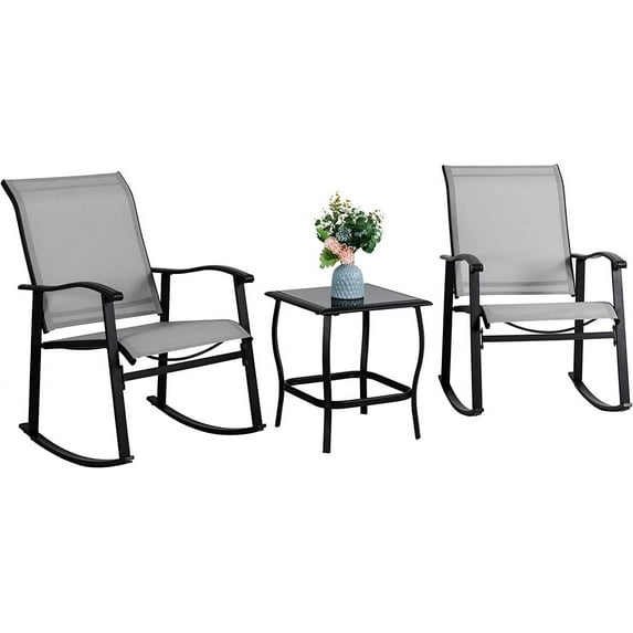 15 out of 5 Stars. 1 reviewsSave withShipping, arrives in 2 daysBest seller Walsunny 3 Pieces Rocking Bistro Patio Furniture Rocker Set with 2 Outdoor Rocking Chairs and 1 Glass Coffee Table for Porch Deck Lawn,Brown $119.99 Was $179.99