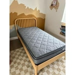 We were blown away at the quality of this matress for the price! Our 10 year old son always had trouble sleeping and this mattress is just what we needed to help him have a comfortable nights sleep. It is firm but just right not too firm. The dark gray fabric looks really nice and has been great quality.