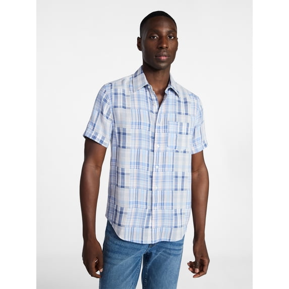 George Men's Patchwork Shirt with Short Sleeves, Sizes S-5XL