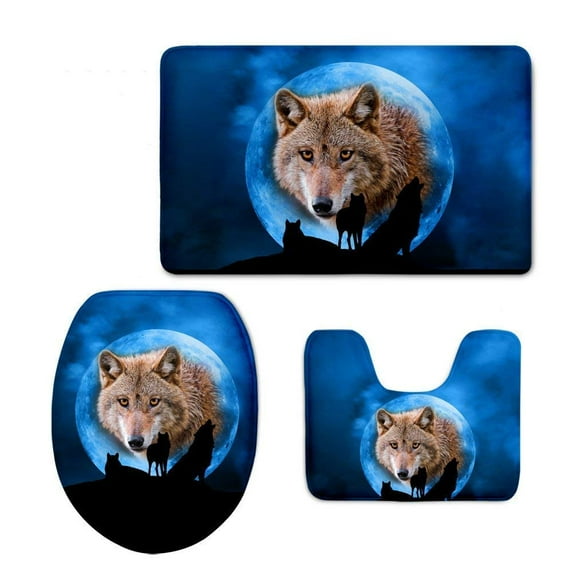 Hero image 0 of GOHAO Wolf 3 Piece Bathroom Rugs Set Bath Rug Contour Mat and Toilet Lid Cover, 0 of 2