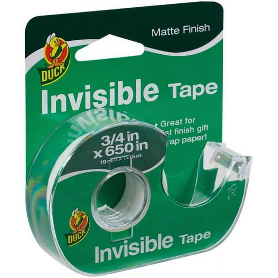 Duck® Brand Invisible Tape boasts the power of virtual invisibility for all your wrapping, sealing and repairing needs. The perfect pick for standard gift-wrap, this non-glossy tape goes on smooth with a matte finish that's writeable too– so it's ideal for labeling and organizing your craft or DIY project. Available in a variety of sizes, this tape is perfect as an all-purpose solution for the craft room, classroom or office, but is not recommended for Kraft paper or giftwrap with recycled content.