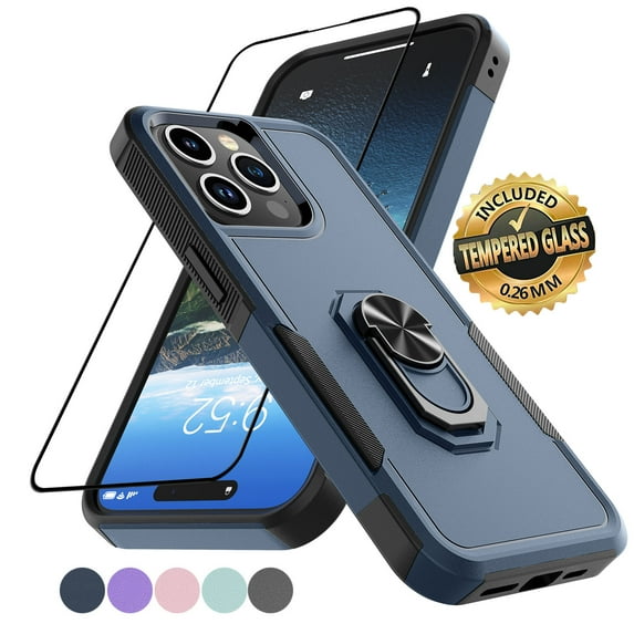 Hero image 0 of For iPhone 15,15 Pro,15 Plus,15 Pro Max Case with Screen Protector,Heavy Duty Shockproof Full Body Protective Phone Cover,Built in Rotatable Magnetic Ring Holder Kickstand for iPhone 15 Pro Max -Blue, 0 of 8