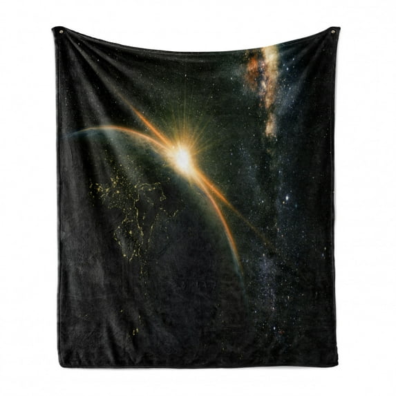 Hero image 0 of Galaxy Soft Flannel Fleece Blanket, Sunrise View of the Planet Earth from Space with Stars in Milky Way Outer Space Art Print, Cozy Plush for Indoor and Outdoor Use, 50" x 70", Black, by Ambesonne, 0 of 6