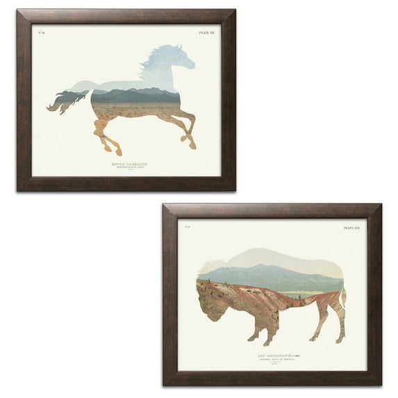Gango Home Decor Contemporary American Southwest Horse & Buffalo by Wild Apple Portfolio (Ready to Hang); Two 14x11in Brown Framed PrintsGango Home Decor Contemporary American Southwest Horse Buffalo by Wild Apple Portfolio Ready to Hang Two 14x11in Brown Framed Prints