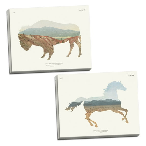 Gango Home Decor Contemporary American Southwest Horse & Buffalo by Wild Apple Portfolio (Ready to Hang); Two 14x11in Hand-Stretched CanvasesGango Home Decor Contemporary American Southwest Horse Buffalo by Wild Apple Portfolio Ready to Hang Two 14x11in Hand Stretched Canvases