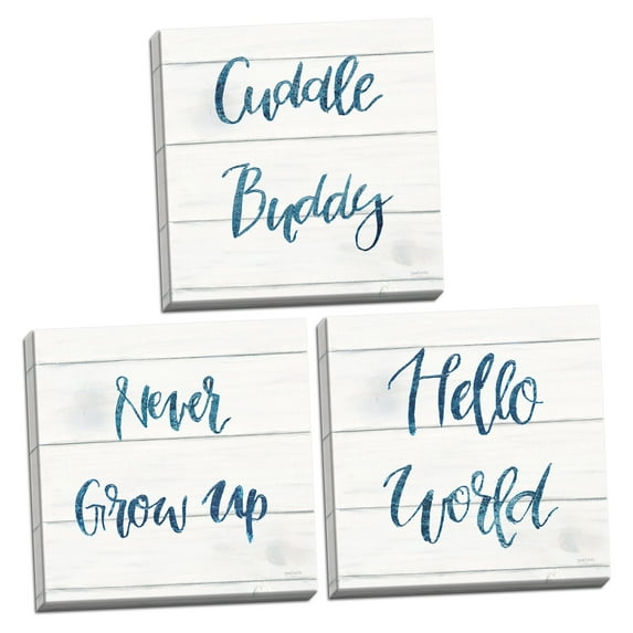 Gango Home Decor Contemporary Sweet Baby Boy I, IV, & VI White Wood Sq by Jenaya Jackson (Ready to Hang); Three 16x16in Hand-Stretched CanvasesGango Home Decor Contemporary Sweet Baby Boy I IV VI White Wood Sq by Jenaya Jackson Ready to Hang Three 16x16in Hand Stretched Canvases
