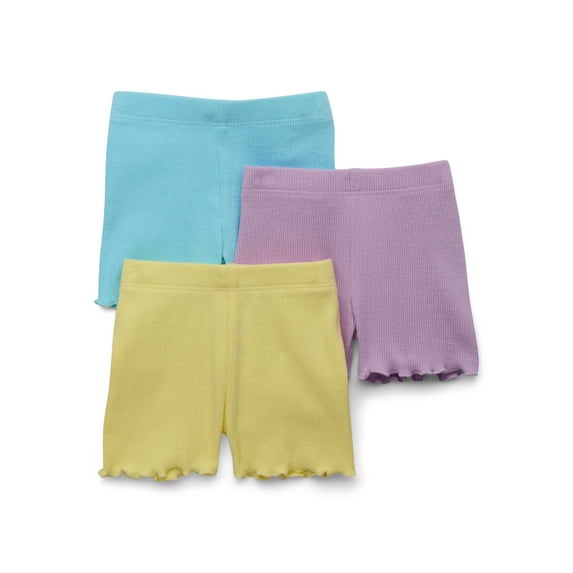 Garanimals Baby Girls Solid Ribbed Ruffle Shorts, 3-Pack, Sizes 0-24M