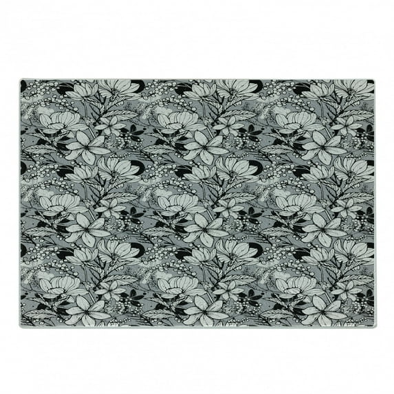 Hero image 0 of Garden Art Cutting Board, Botanical Pattern with Hand Drawn Flowers Frangipani Mimosa and Lotus, Decorative Tempered Glass Cutting and Serving Board, Small Size, Black White Pale Grey, by Ambesonne, 0 of 1