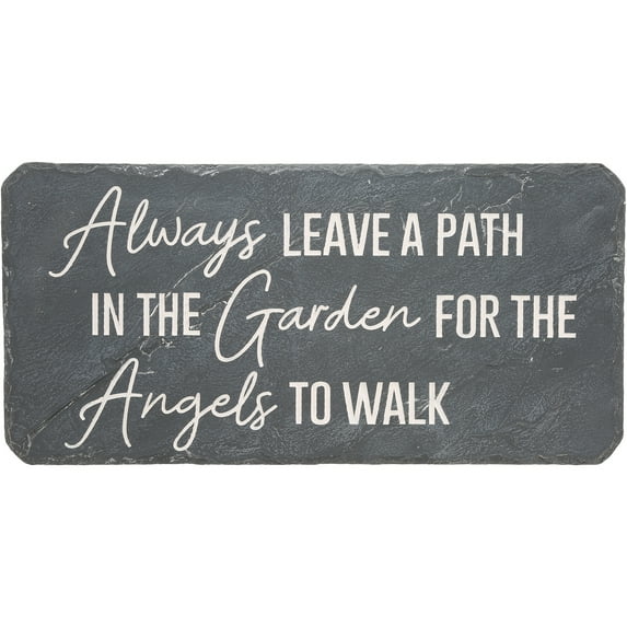 - IN-HOUSE DESIGN: Dark gray garden stone with a textured surface and rounded edges, featuring the heartfelt sentiment "Always Leave A Path In The Garden For The Angels To Walk." This charming stone adds a touch of warmth and love to any outdoor or indoor space, serving as a meaningful reminder of the welcoming atmosphere within your home.