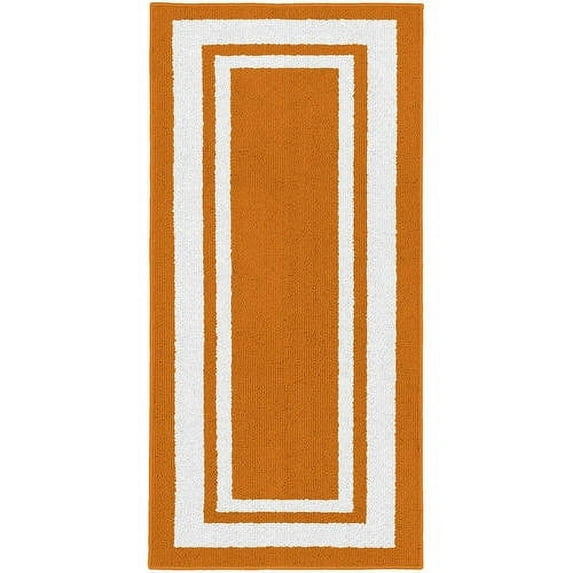 - Size and Color: 2-ft. x 5-ft. Indoor/Outdoor Runner Rug in Orange and White