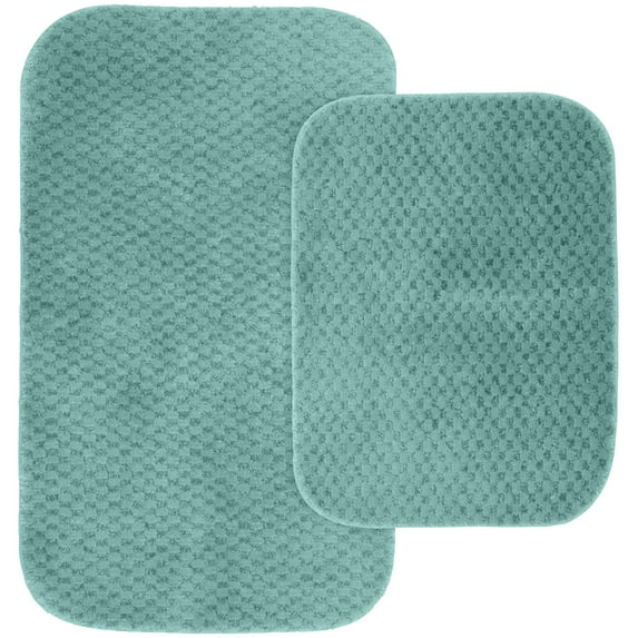 Garland Rug Cabernet Washable Nylon Bath Rug Set, 2 Piece Set (17"x24" Bath Rug, & 21"x34" Bath Rug) Sea Foam