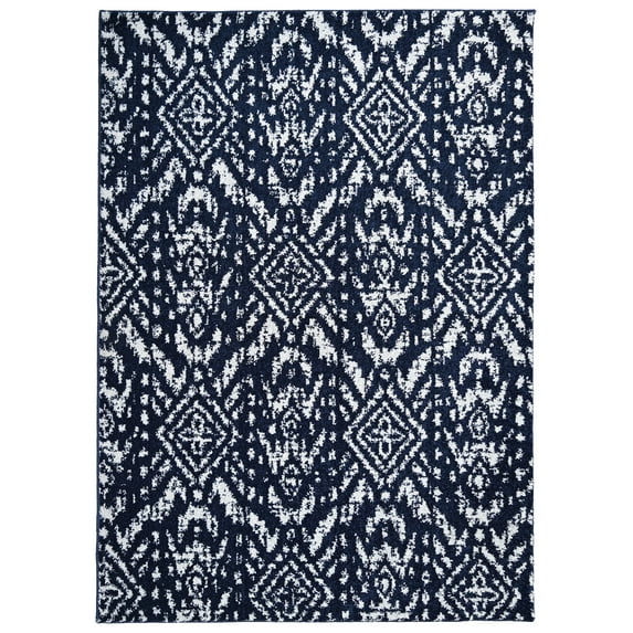 - Size and Color: 5-ft. x 7-ft. Indoor Area Rug in Navy and Silver