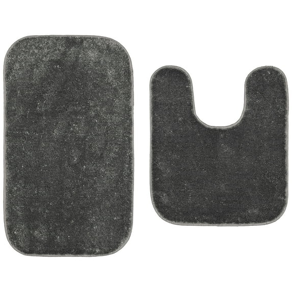 Garland Rug Gramercy Washable Bath Rug Set, 2-Piece (20"x34" & Contour Rug) Cinder Gray