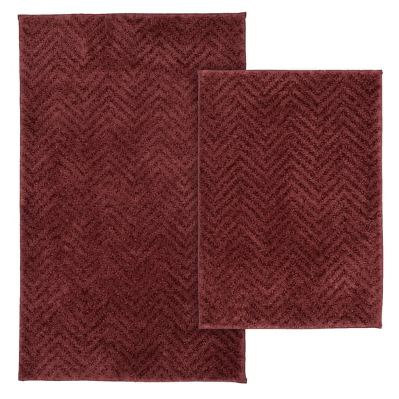 - Set Includes: 17-in x 24-in Bath Rug, and a 21-in x 34-in Bath Rug in Chili Pepper Red