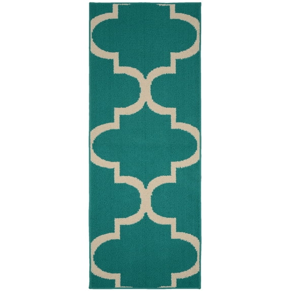 Garland Rug Quatrefoil Polypropylene Teal/Ivory Indoor Runner Rug, 2' x 5'