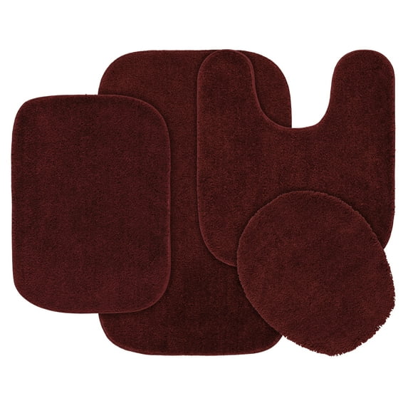 Garland Rug Traditional Washable Bath Rug Set, 4 Piece Set (2 Bath Rugs, Contour, & Lid) Chili Red