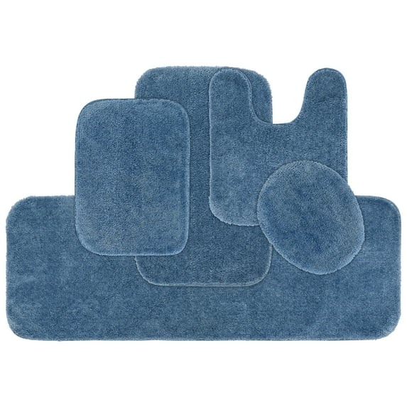 Garland Rug Traditional Washable Bath Rug Set, 5 Piece Set (2 Bath Rugs, Contour, Lid, & Runner) Basin Blue
