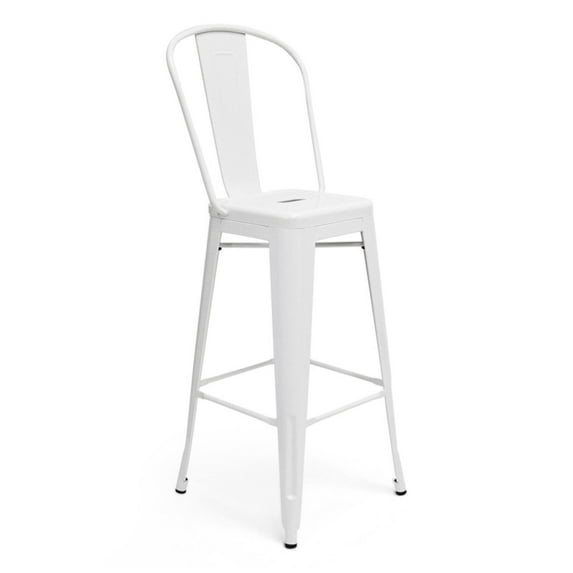 Garvin Bar Height Stools are expertly crafted with a comfortable curved back. The classic industrial look of these bar stools make them perfectly stylish while their powder coated galvanized steel construction and non-marking feet render them functional as well. Available in your choice of Silver, White or Blue finish. Suitable for commercial as well as residential use and can be used indoors or outside. (2 per carton) Also available in a counter height.