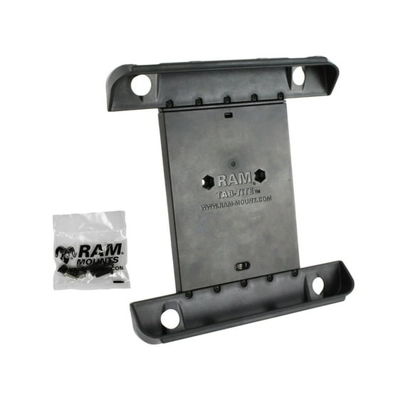 RAM-HOL-TAB3U RAM Mounts Tab-Tite Tablet Holder for Apple iPad Gen 1-4 + More SPECIAL NOTE: PLEASE MEASURE YOUR DEVICE AND COMPARE TO THE CRADLE SPECS LISTED BELOW BEFORE PURCHASING. NO REFUNDS OR EXCHANGES FOR FAILURE TO MEASURE! Cradle Dimensions:Height: 8.5" to 11.125"Width: 6.38" to 7.75" Depth: 0.13" to 0.56" Known compatible devices: Apple iPad (1st Generation) Apple iPad (2nd Generation) Apple iPad (3rd Generation) Apple iPad (4th Generation) ASUS MeMO Pad FHD 10 ASUS Transformer Pad Dell Venue 10 7000 Dell Venue 11 Pro 7000 HP ElitePad 900 HP ElitePad 900 G1 HP Pro 610 Lenovo S6000 Lenovo Tab A10 Lenovo ThinkPad 10 Lenovo Yoga Tablet 10 Lenovo Yoga Tablet 10 HD+ Lenovo Yoga Tablet 2 (10 inch) The RAM-HOL-TAB3U consists of a spring loaded back plate and custom support cups. The spring loaded design makes it easy to load and unload your tablet, along with keeping it secure while on the go. Interchangeable cup ends are designed to optimize the functionality of your tablet, allowing access to audio jacks, usb, power, and other ports, your tablet can be used just as it was intended. Perfect for stationary or on the go applications, the RAM-HOL-TAB3U is just what you need to get the most out of your tablet. The included backplate is interchangeable with various size support cups, making it compatible with numerous tablet models. New detachable support cups are the only components needed for purchase, attach to the backplate for support of your new tablet. Included is a set of four nuts and bolts to connect the cradle to any RAM components or mounts that contain the universal AMPs hole pattern. For off-road environments and extreme use, we recommended the use of a tether (not included) to assist in retaining your device. The Tab-Tite™ cradle is compatible with any tablet that will fit the dimensions listed below. It is important to verify the dimensions of your tablet when determining the overall size. Features:1. Support cups contain open slots to accommodate for tablets of various sizes2. Back plate can support various size support cups3. Spring loaded tension provides secure support for your tablet4. Spring loaded cradle allows for quick release of your tablet5. High strength materials maximize longevity of cradle6. Full access to all ports 7. Lifetime warranty Material:High Strength CompositeNote:The "U" in the part number reflects product packaged in poly bag. Rear ball is required and not included. Suggest RAM-B-202U for 1-inch ball or RAM-202U for 1.5-inch ball.