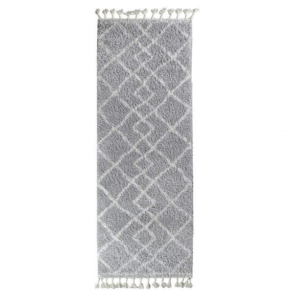 Geometric Diamonds Boho Shag Indoor Tassel Runner Rug, Cream/Grey, 2' 7" x 8'