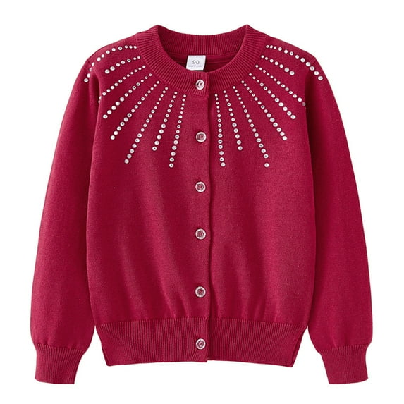 Girls' Rhinestone Knit Cardigan Round Neck Cotton Sweater Jacket