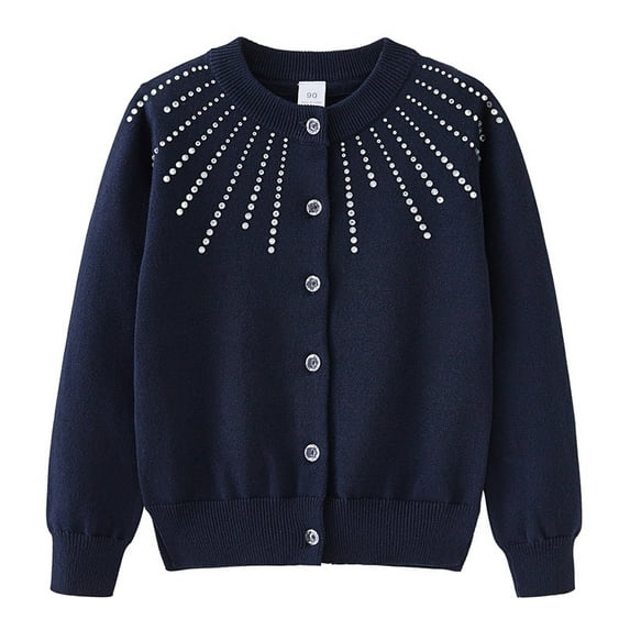 Girls' Rhinestone Knit Cardigan Round Neck Cotton Sweater Jacket