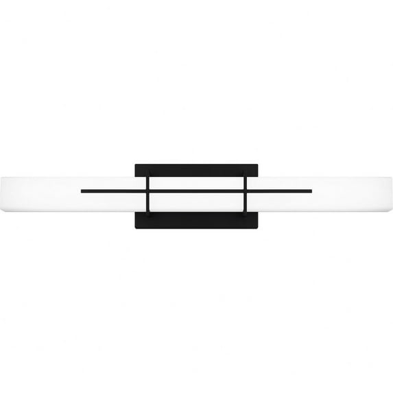 Quoizel Lighting-PCGI8528MBK-Collection: Giselle, Material: Steel, Finish Color: Matte Black, Width: 28.25", Height: 4.75", Length: 4.25", Backplate Width: 4.75", Backplate Length: 9", Lamping Type: LED, Number Of Bulbs: 1, Wattage: 23 Watts, Cri: 90, Color Temperature: 3000 Kelvin, Lumens: 1650, Dimmable: Yes, Desc: Upgrade your bathroom vanity with the contemporary style of the Giselle collection. The rectangular silhouette features a matte black finish paired with an opal etched glass shade for a polished look. Integrated LED technology intensifies the glow with long-lasting, energy efficient lighting. Install Giselle horizontally or vertically to best suit your design preference. 4.75" H 28.25" W 4.25" L / Base Finish MBK - Matte Black / ShadeType Frosted / Item Weight 6.40 / BP Height In 4.75, BP Width In 9.00 / Product Design Style: Contemporary / Product Shade: Opal Etched Glass / Product Warranty: Product Warranty: Indoor Lighting Fixtures-Electrical Components [1 Year], Integrated LED (LED Bulbs Excluded)[5 Years], Finish[1 Year]; Outdoor Lighting Fixtures-Electrical Wiring & Sockets [1 Year], Integrated LED (LED Bulbs Excluded)[5 Years], "Armour" Finish[5 Years], Finish[2 Years]. ,-Giselle - 23W 1 LED Bath Vanity In Contemporary Style-4.75 Inches Tall and 28.25 Inches Wide