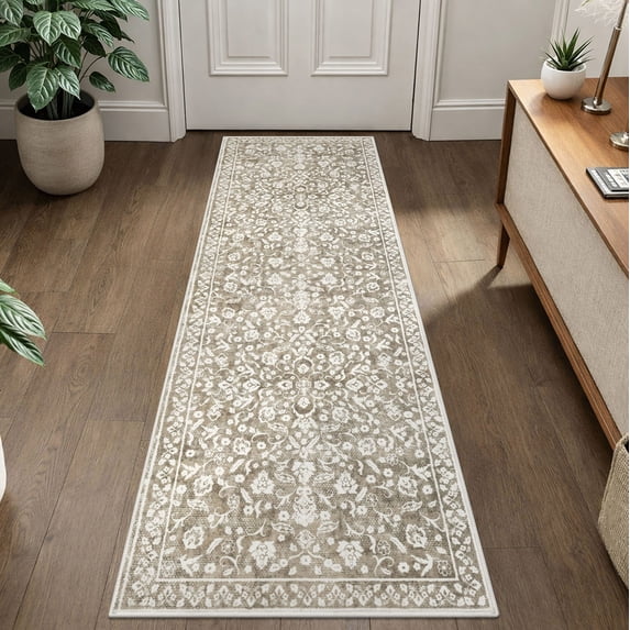Hero image 0 of GLATTICE Runner Rug for Hallway 2x7 Non Slips Rug Runner Super Soft Kitchen Runner Rug Printed Faux Wool Floral Thin Rugs for Entryway Laundry Room Bedroom, Taupe Beige with Ivory Hues, 0 of 6