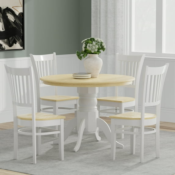 Glenwillow Home 5PC Dining Set - 42" Rnd Pedestal Table + Spindle Chairs -Wht/Nat