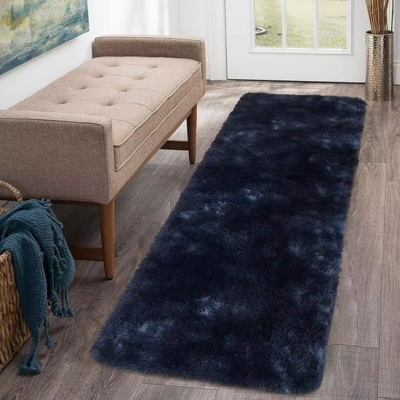 GlowSol 2' x 6' Hallway Runner Rug Shag Furry Runner Rug Plush Fluffy Rug Soft Rug for Nursery Playroom Home Decorative, Navy Blue