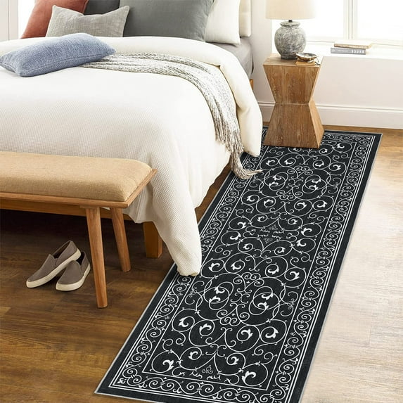 GlowSol 2'x6' Kitchen Hallway Runner Rugs Modern Floral Runner Rug Non-Slip Bedroom Accent Rug for Laundry Room, Black