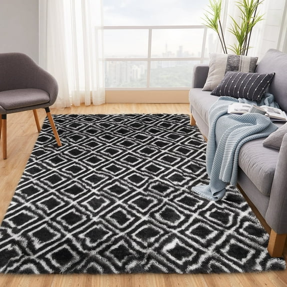 Hero image 0 of GlowSol Shag Area Rug 9x12 Large Soft Fluffy Shaggy Rug Geometric Pattern Rug Plush Furry Rug for Living Room Bedroom Non-Slip Rug, Dark Gray, 0 of 6
