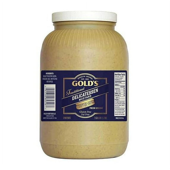 The Gold’s Delicatessen Style Mustard will add great taste to salads, dressings, and sandwiches. Prepared with walnuts and corn syrup, this ready-to-use mustard is coarse-ground and has a rich, sharp taste. The Gold’s delicatessen-style mustard bulk pack is a great buy for delis, bistros, and diners.