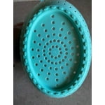 These colanders are made out of very sturdy plastic. You know how, these days, you order something, and are happily surprised if it is of superior quality? That was the case when I unwrapped these colanders. They are obviously built to last. Both the teal one and the gray one have a ring on the bottom that keeps them above the bottom of the sink's surface. The little yellow one doesn't, but it fits easily into any bowl hanging around, so I just suspend it over one of those in case I don't want it to be in contact with the sink's bottom.